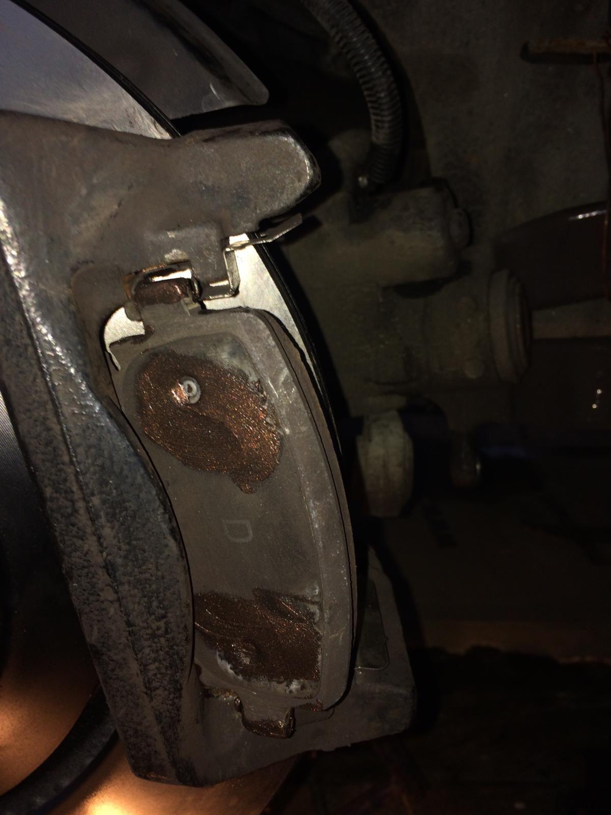 Fit the new disk , apply copper slip to the ears on the pads . gently rotate then in .This is after cleaning up the sliders .Theses were in good condition after a clean .