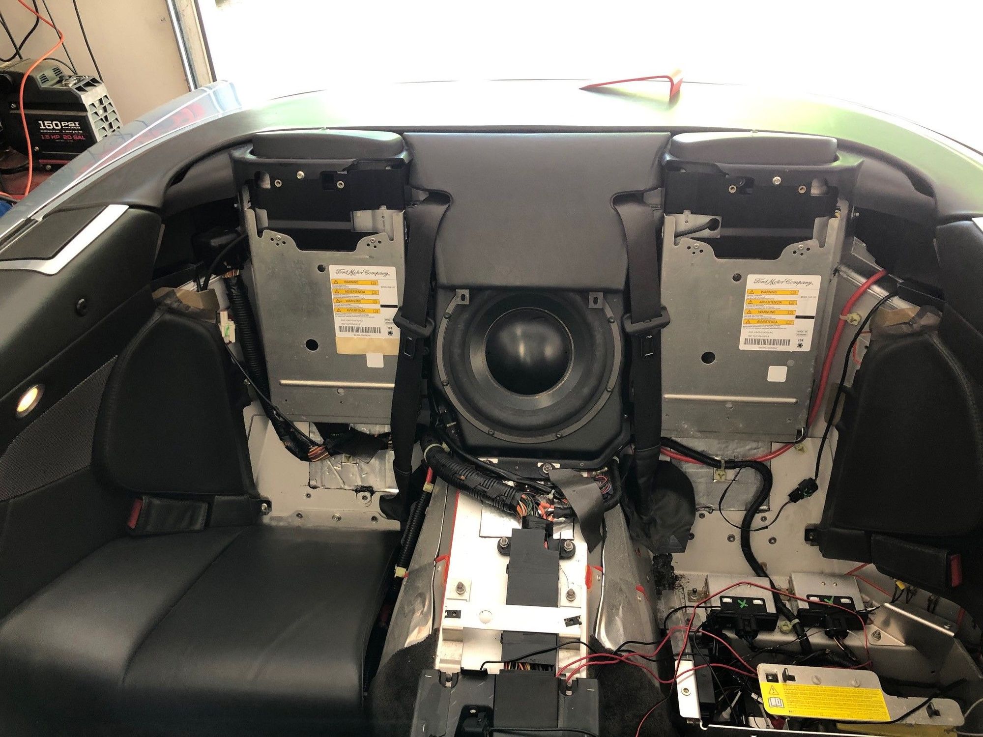 '06 DB9 Volante with lots of stuff removed in the back. You don't need to remove the right side (left in picture) seatback like I did. See the big red cable at far right.