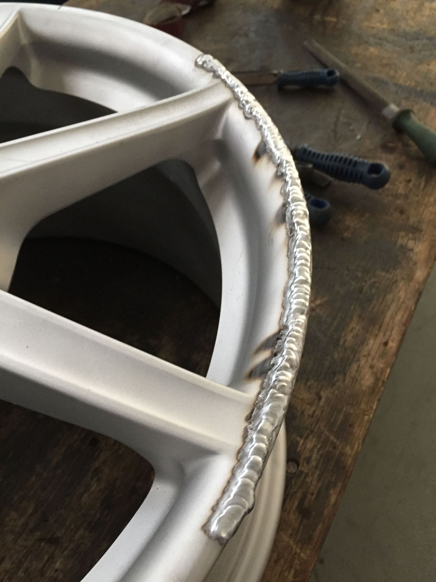 Welded the wheels where the "real" repairshop only cut the marks away on a lathe. So I rewelded the lost material back.