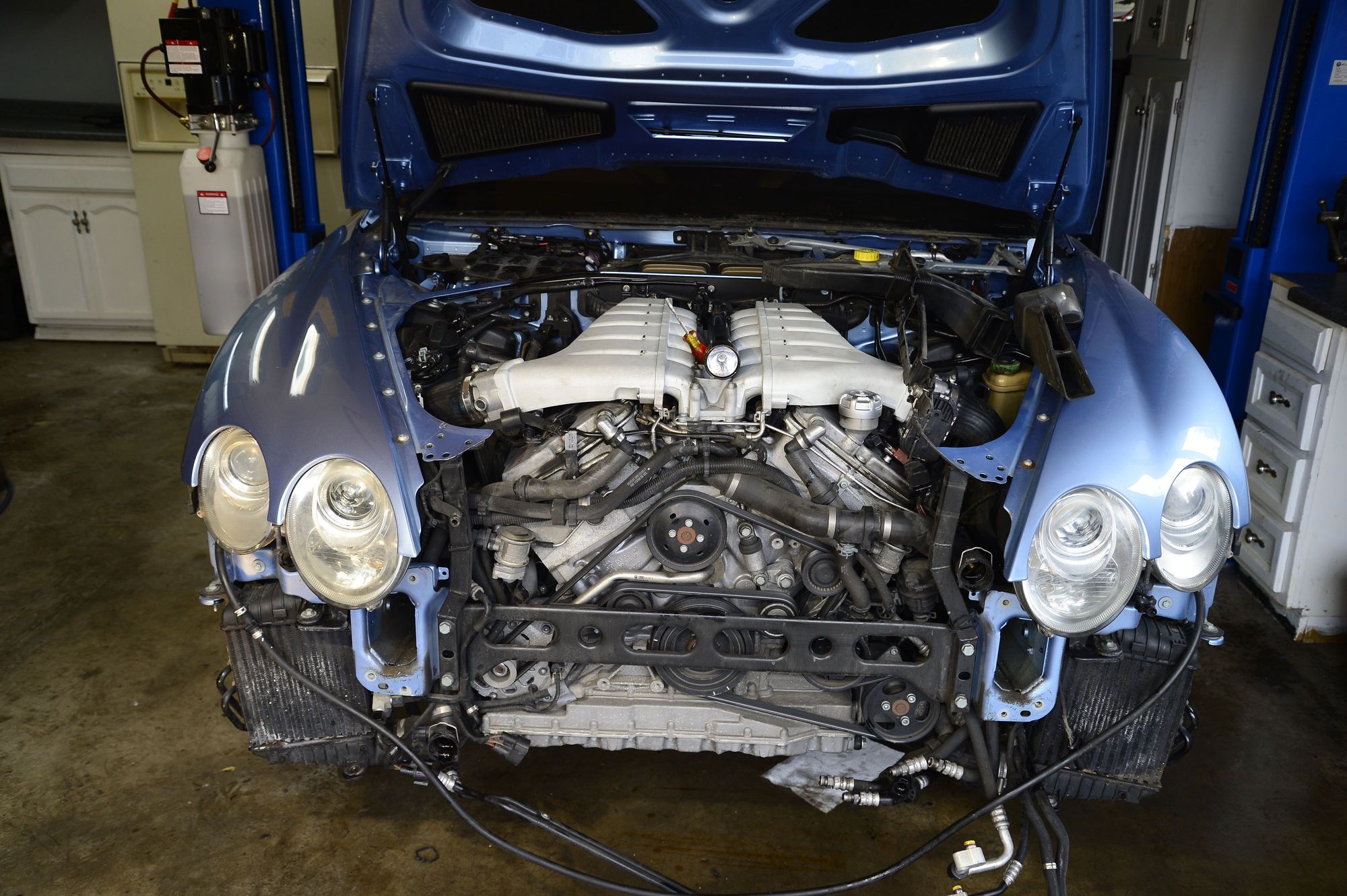 Then remove the radiator assembly. Here, you have to be careful disconnecting all systems, including electrical. Before starting, evacuate the AC, drain coolant, empty power