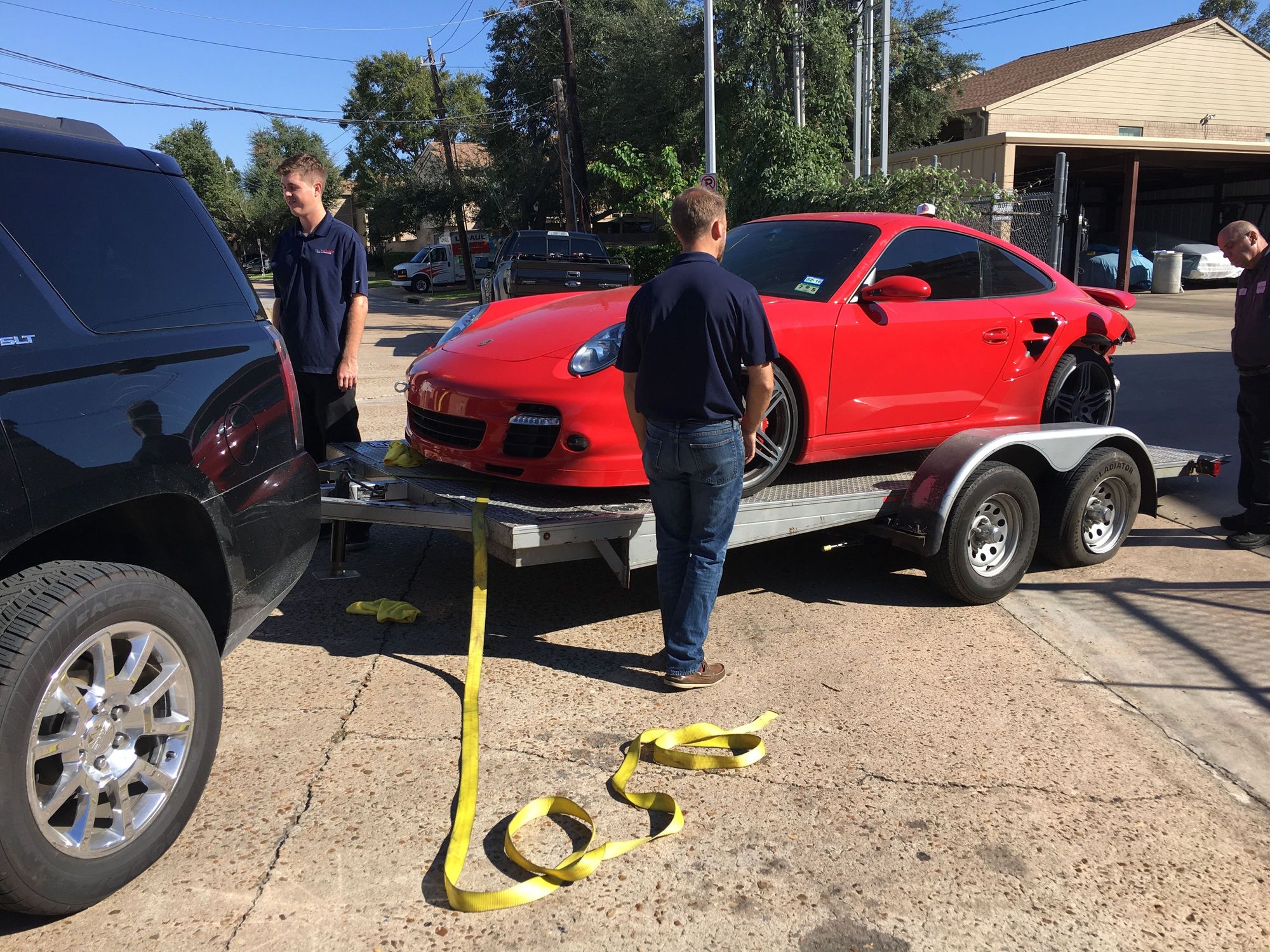 That front wheel not being straight really caused us a problem. We couldn't just back the car straight off the trailer because the wheel was turned slightly.