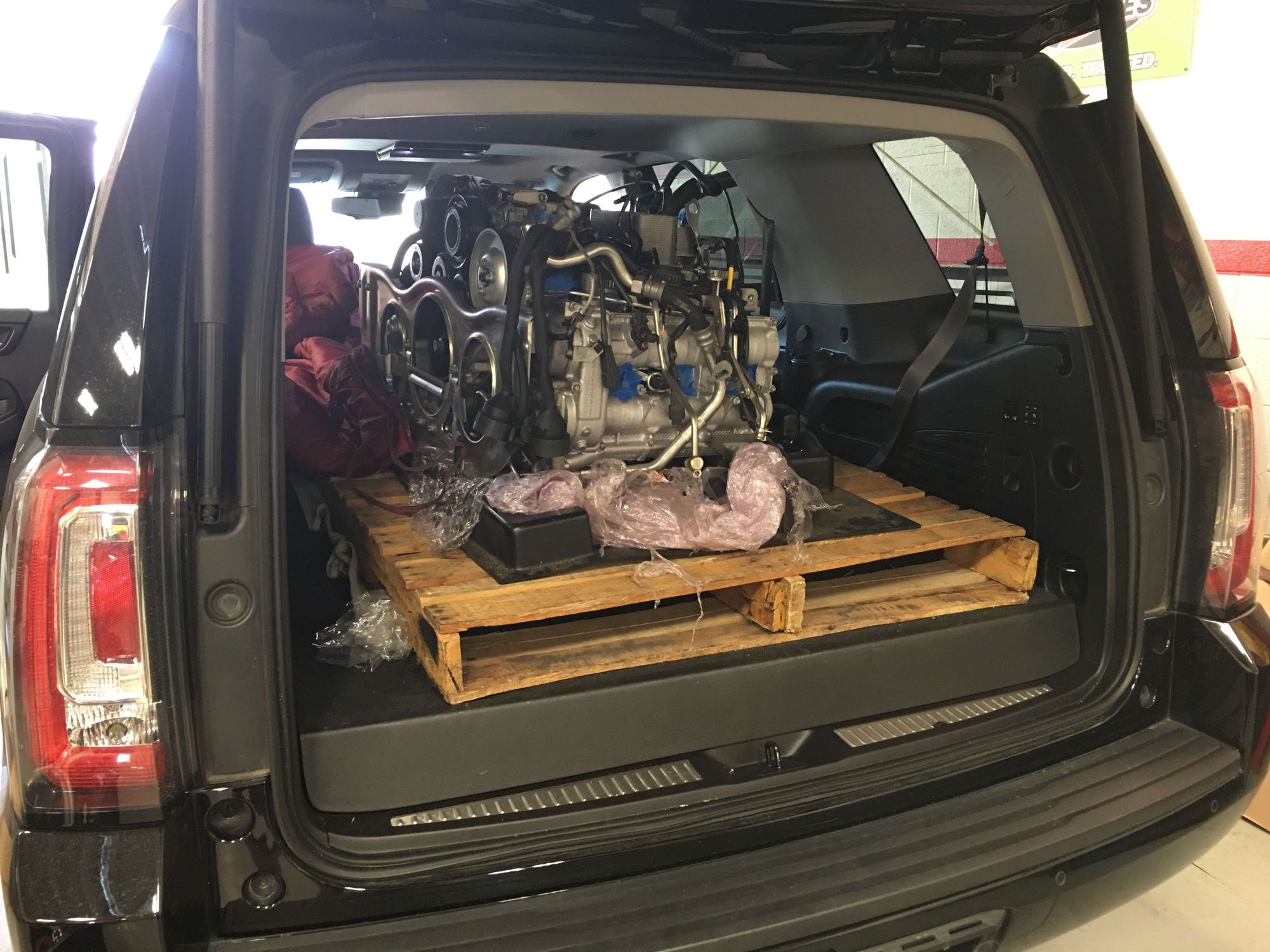 It was a tighter fit getting this in the Yukon with the Forklift than you'd think. It would be easy if you took the rear hatch off, but the forklift can't get too close to the truck so it's tough.